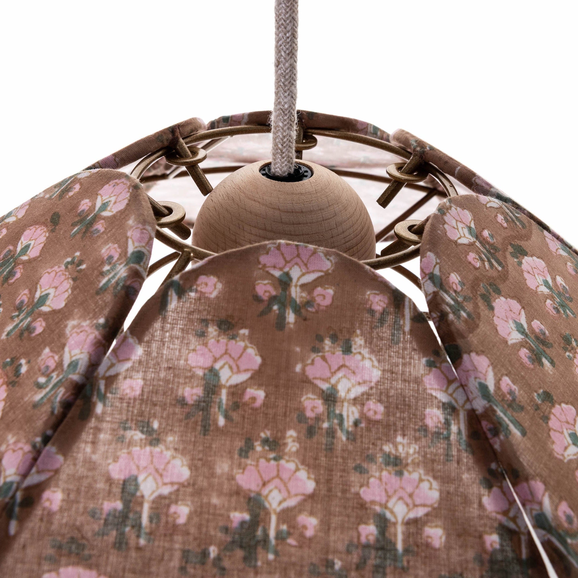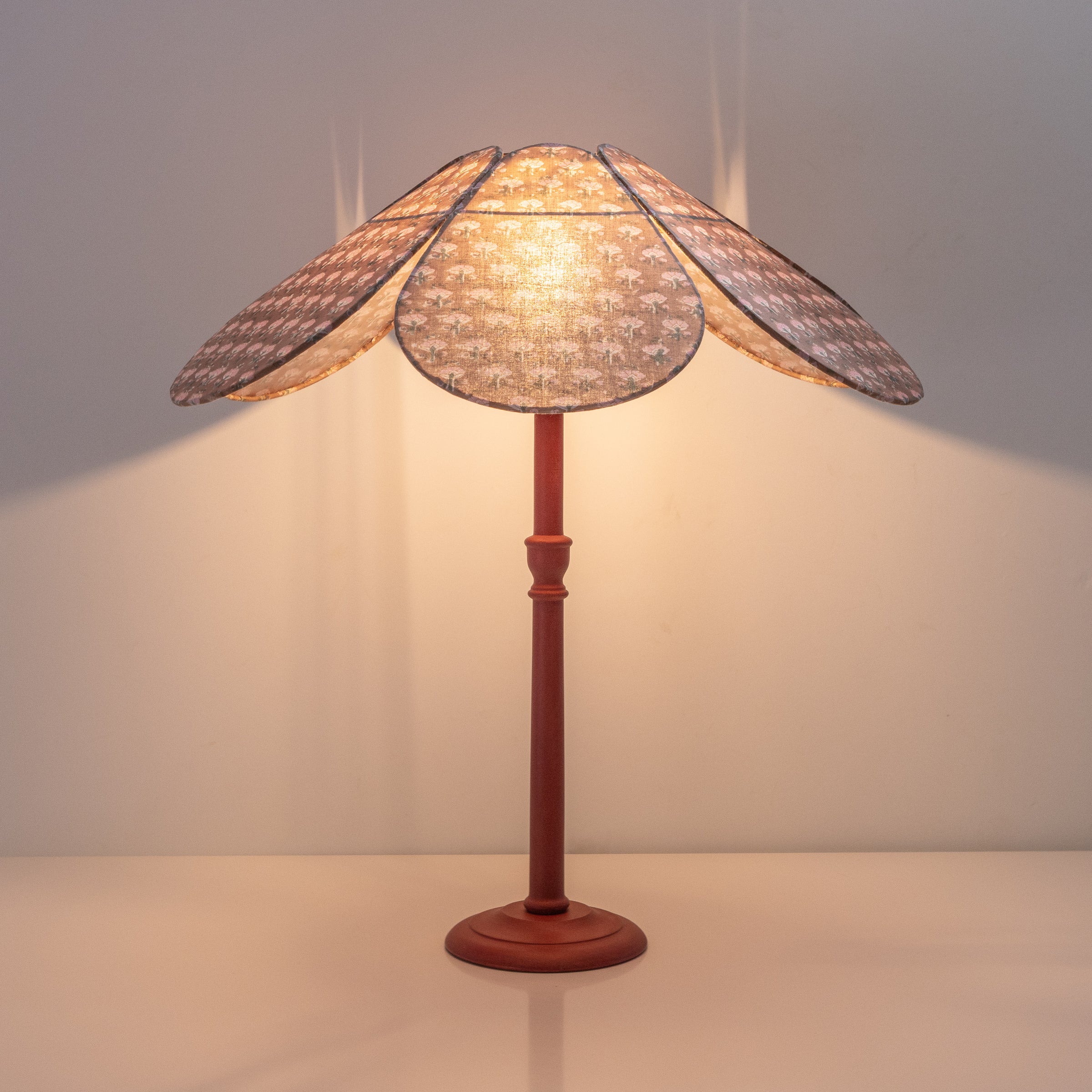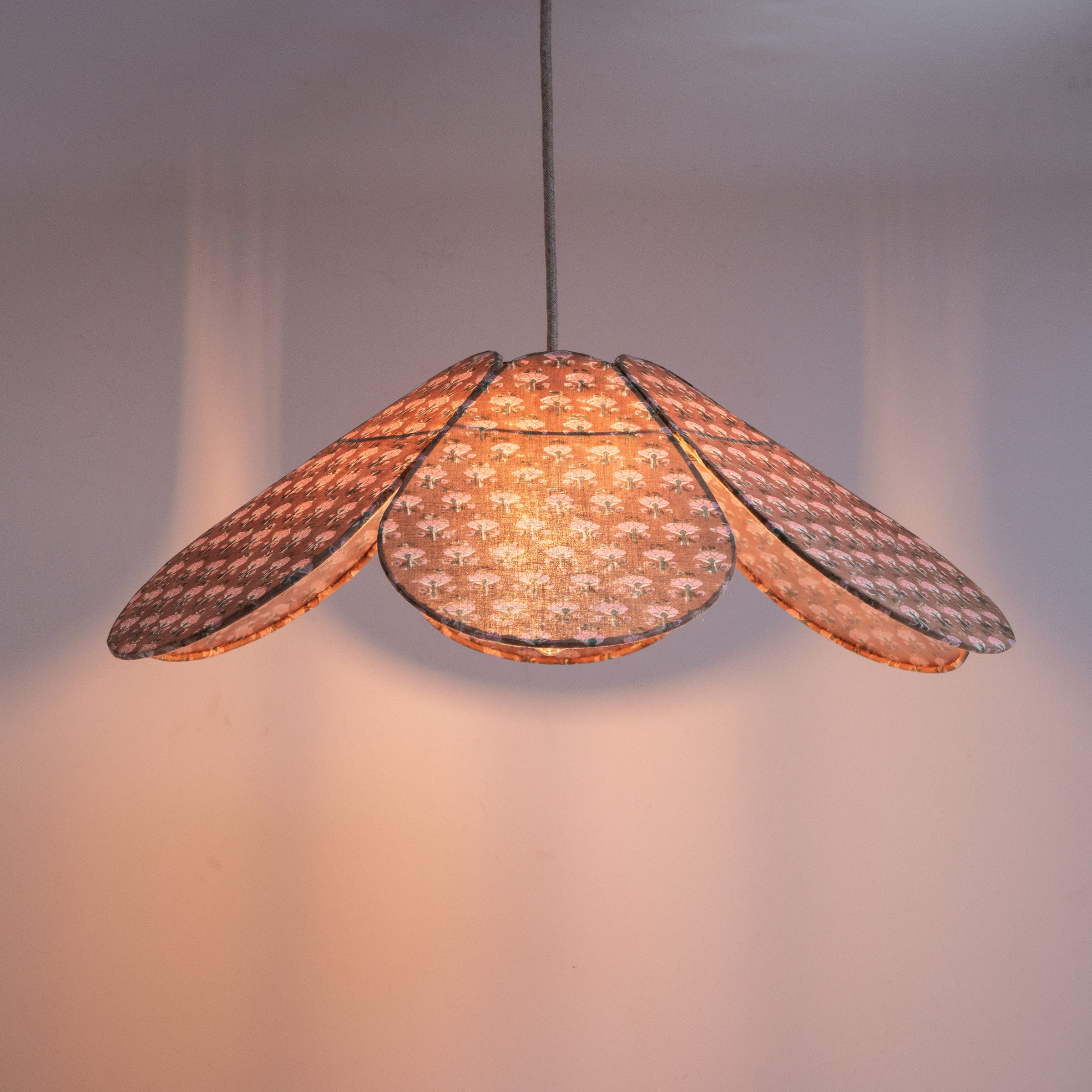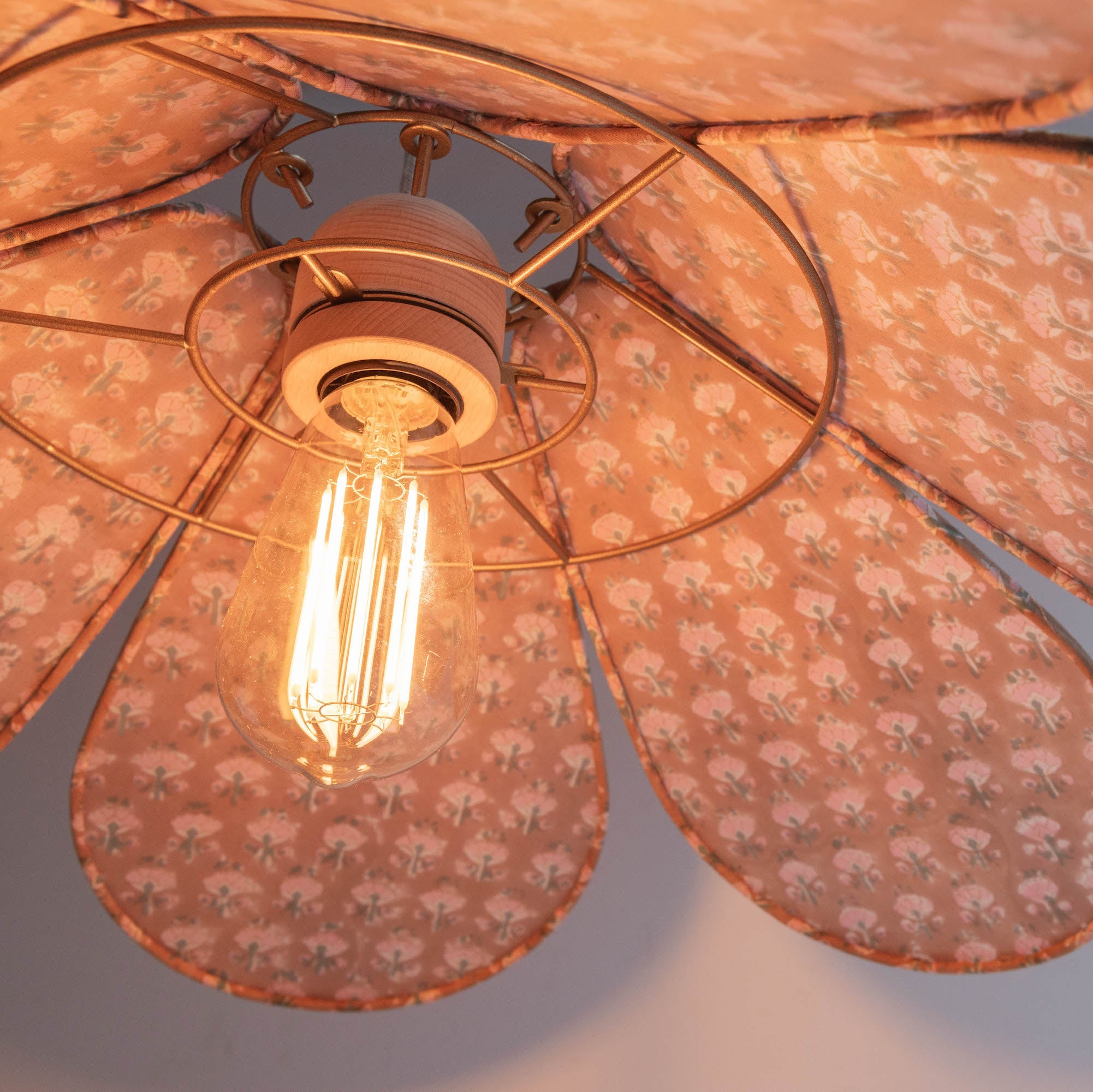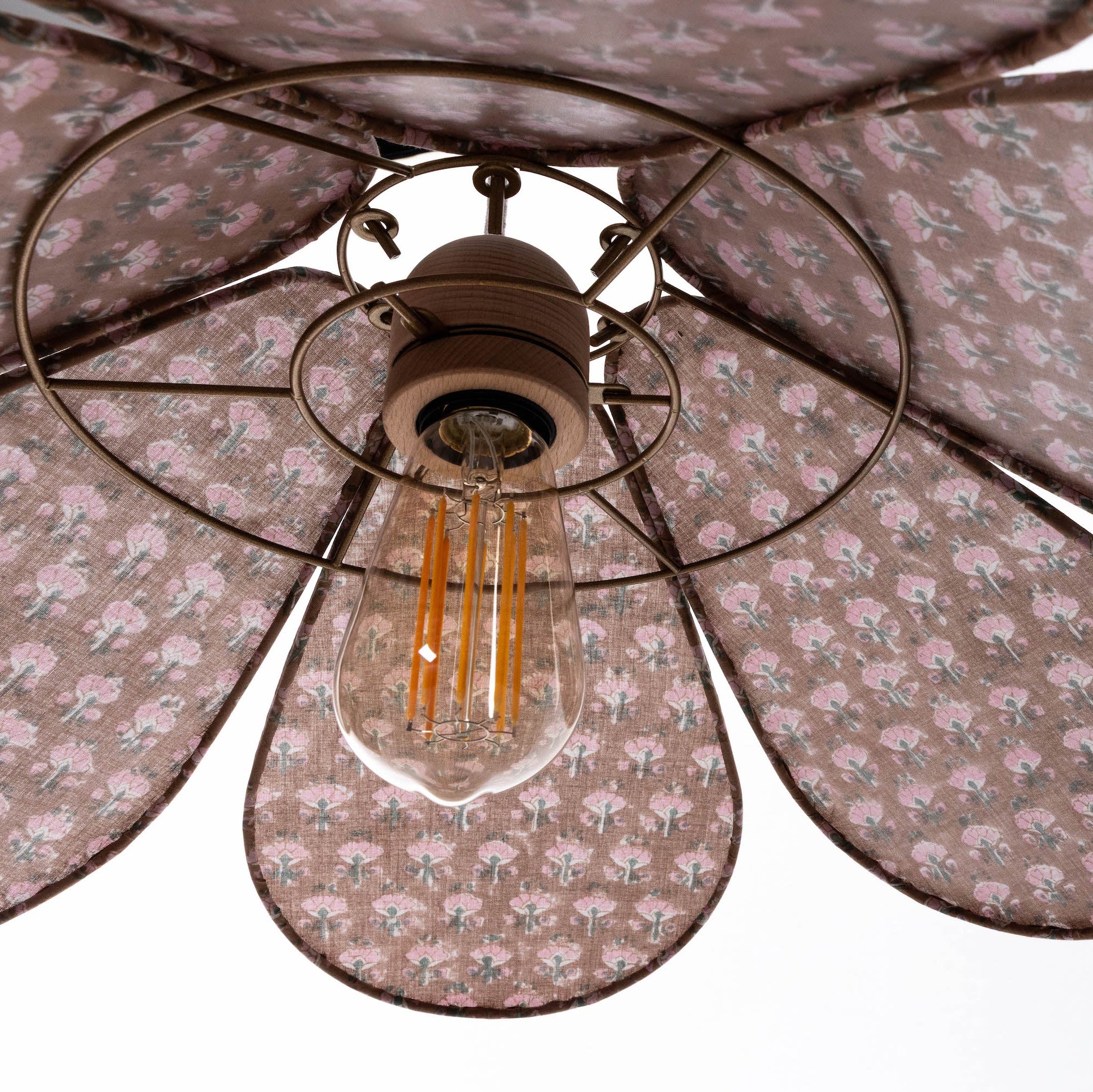 The unique frame design allows the petals to be fully interchangeable, meaning you can create your own bespoke shade or choose from our curated selection of fabrics.